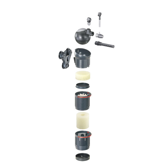 Vesi imetään suodattimeen alhaalta ja johdetaan usean suodatinkorin läpi, joissa tapahtuu ensin mekaaninen ja sitten biologinen puhdistus. Lopuksi vesi kulkee yläosan hienosuodatuksen läpi ja palautuu akvaarioon puhtaana ja hapekkaana.